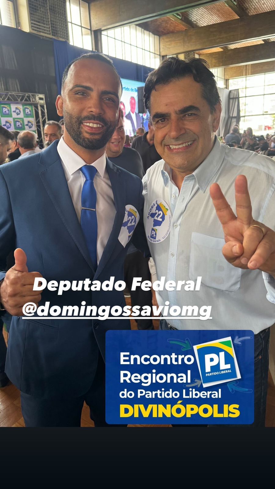 No ltimo dia 23 de Maro, tive a honra de participar do evento de filiao do Partido Liberal em Divinpolis, ao lado de ilustres figuras da poltica brasileira, como os Deputados Domingos Savio, Bruno Engler, Eros Biondini e o Senador Cleitinho, alm de muitos outros membros e apoiadores do partido.